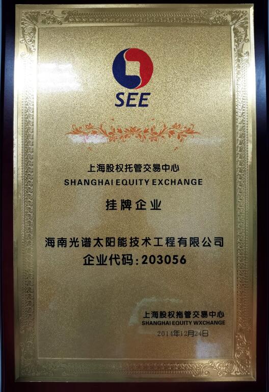 海南光譜節(jié)能環(huán)??萍加邢薰境闪⒂?001年,注冊資本1018萬元人民幣,是一家專業(yè)的太陽能、中央空調(diào)工程技術(shù)系統(tǒng)集成商。2014年12月24日,我司在上海股權(quán)托管交易中心成功掛牌,上股交代碼為:203056。