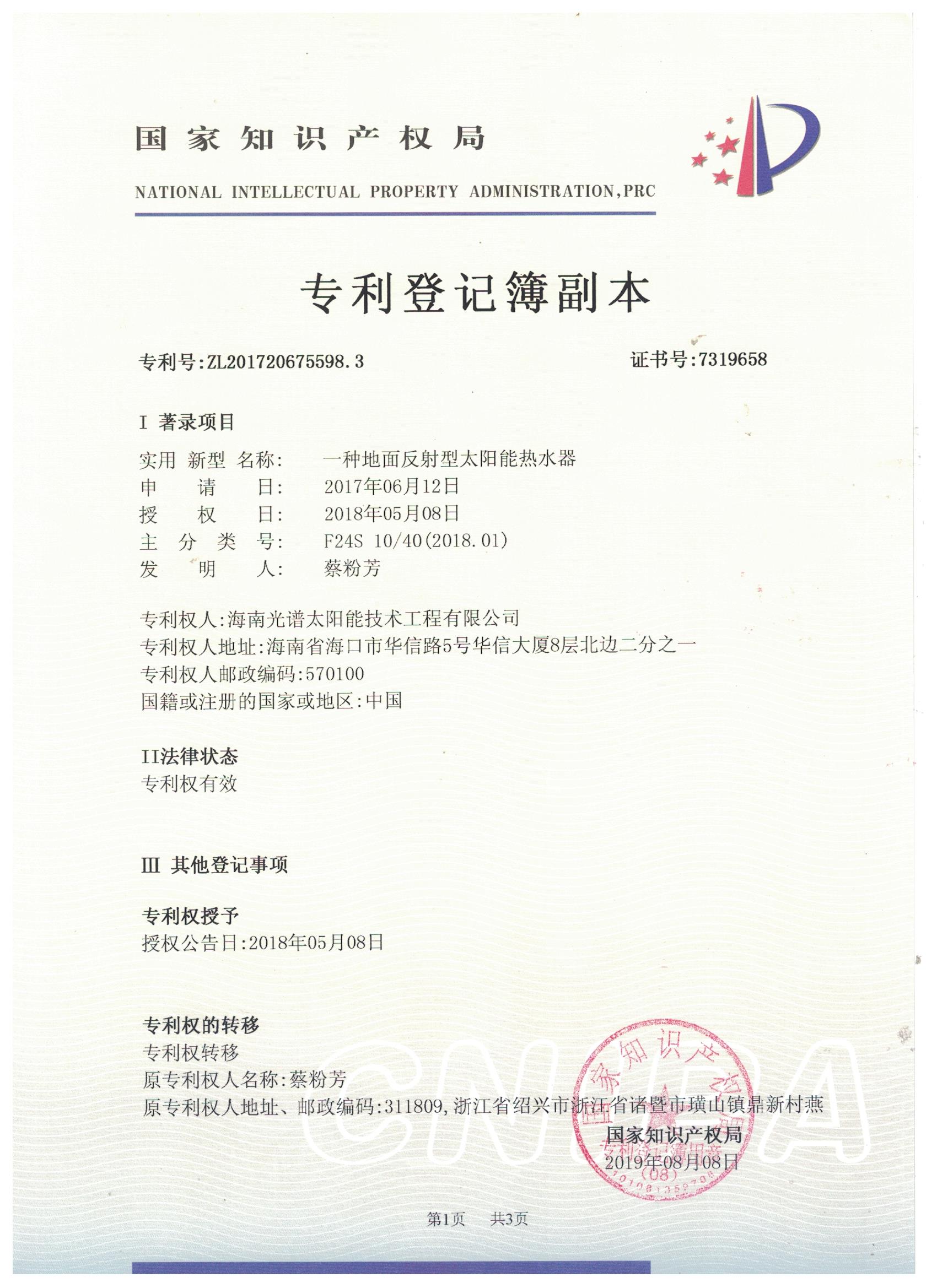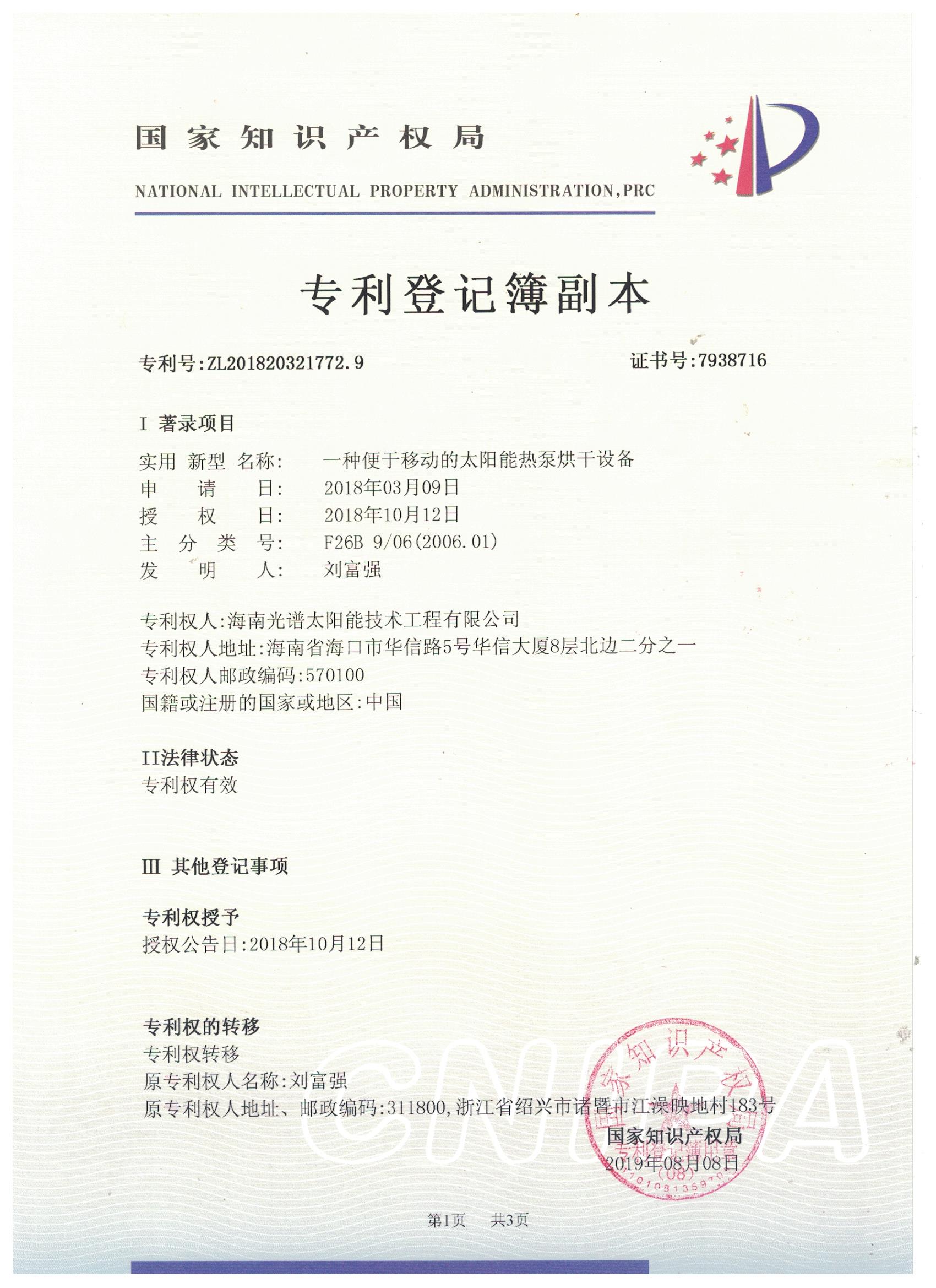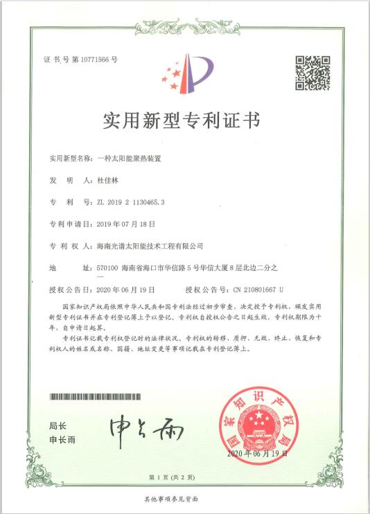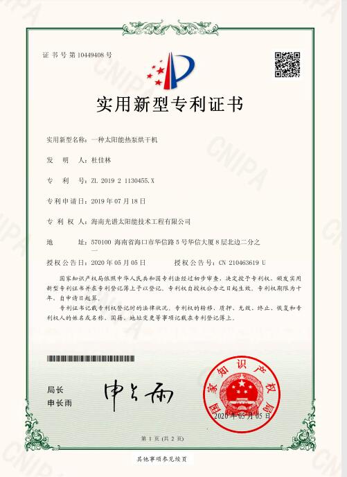 近日,我司申報的“一種太陽能熱泵蒸汽發(fā)生裝置”發(fā)明專利通過審查,獲得國家知識產(chǎn)權(quán)局授予的發(fā)明專利證書,授權(quán)專利號為“ZL201911126309.4”。 此次獲得國家頒發(fā)的專利證書,是對海南光譜公司創(chuàng)新實(shí)力的認(rèn)可,代表著我司知識產(chǎn)權(quán)取得了突破性進(jìn)展,為公司的持續(xù)性發(fā)展提供強(qiáng)有力的科技創(chuàng)...