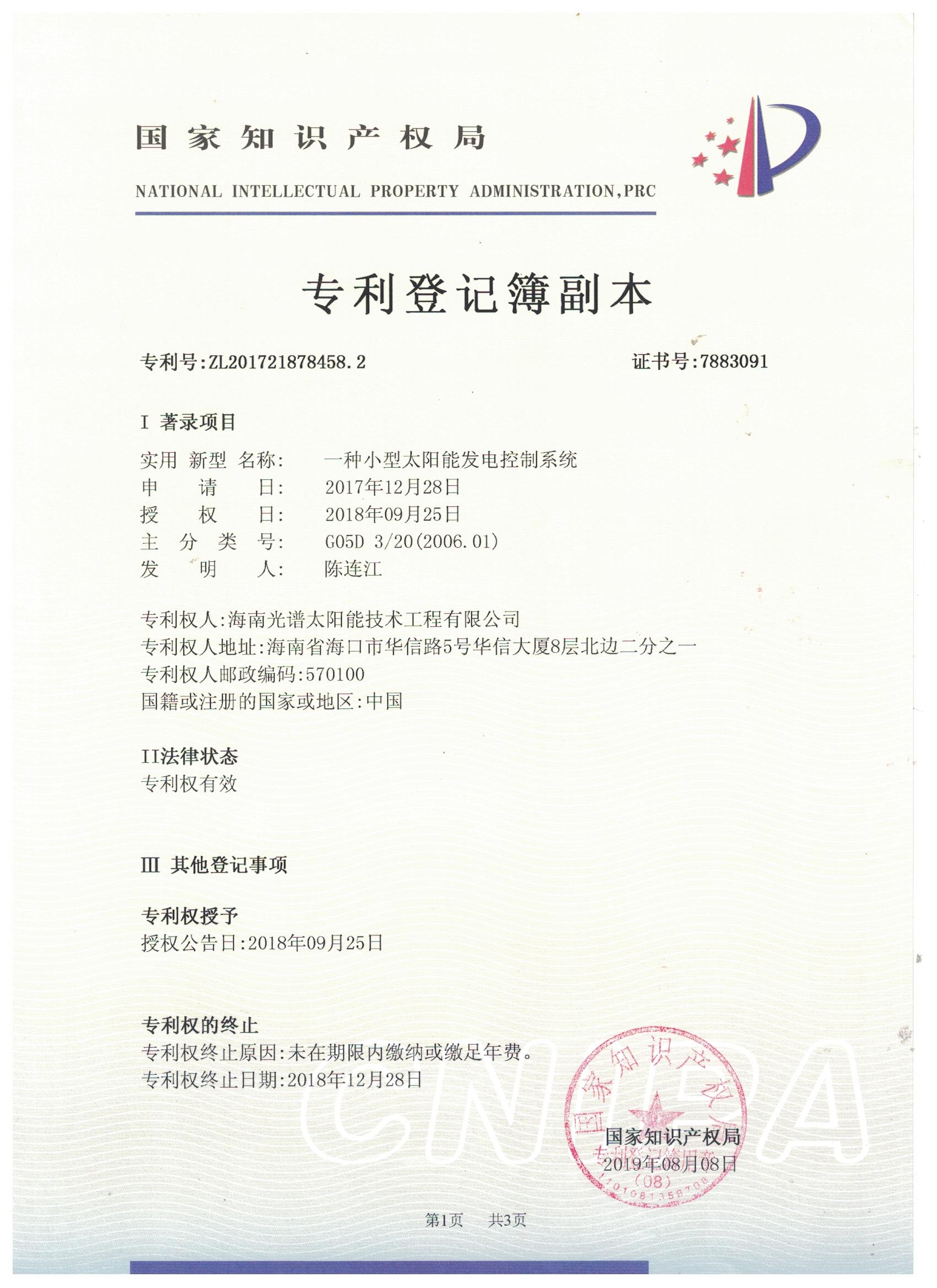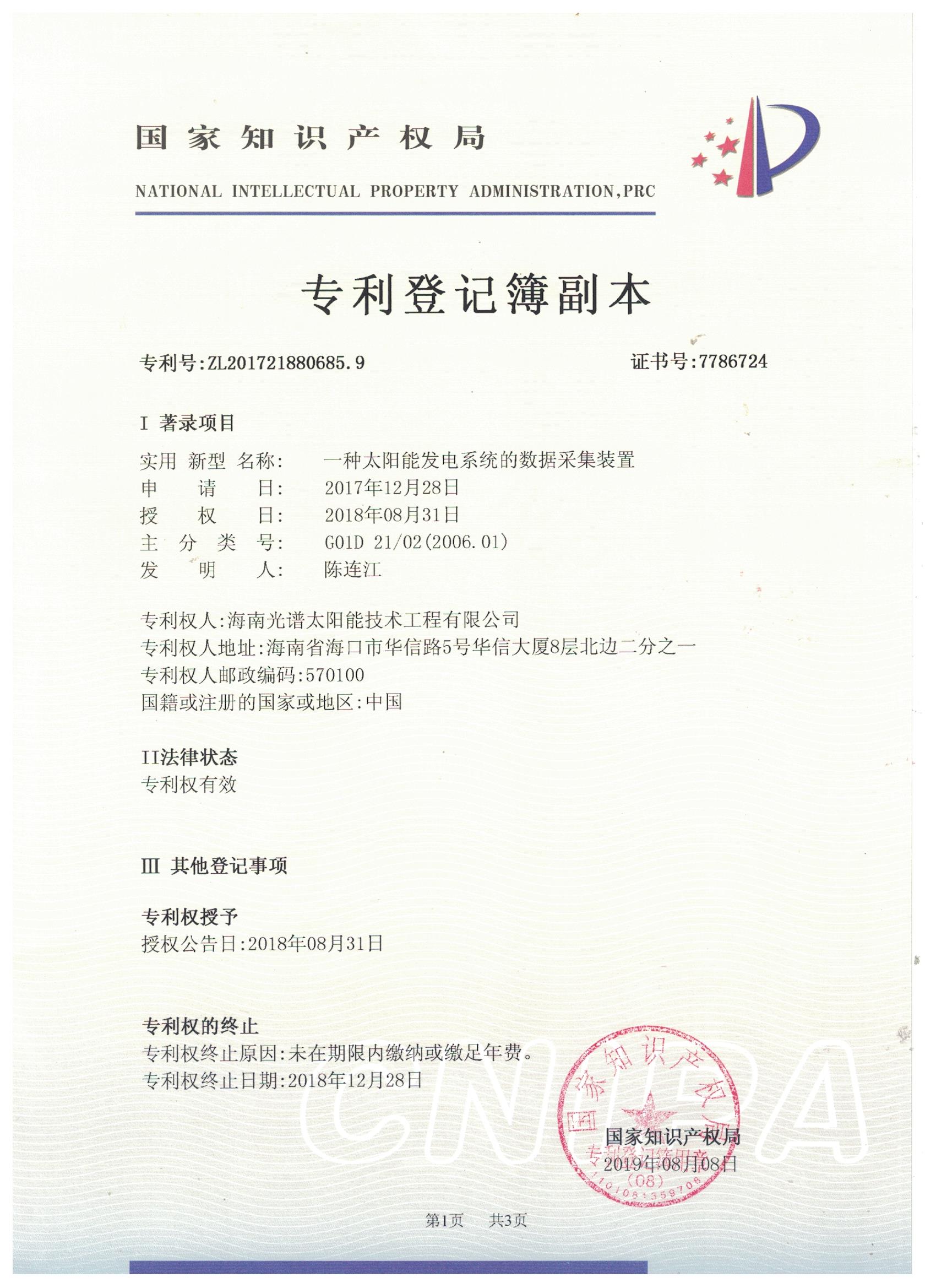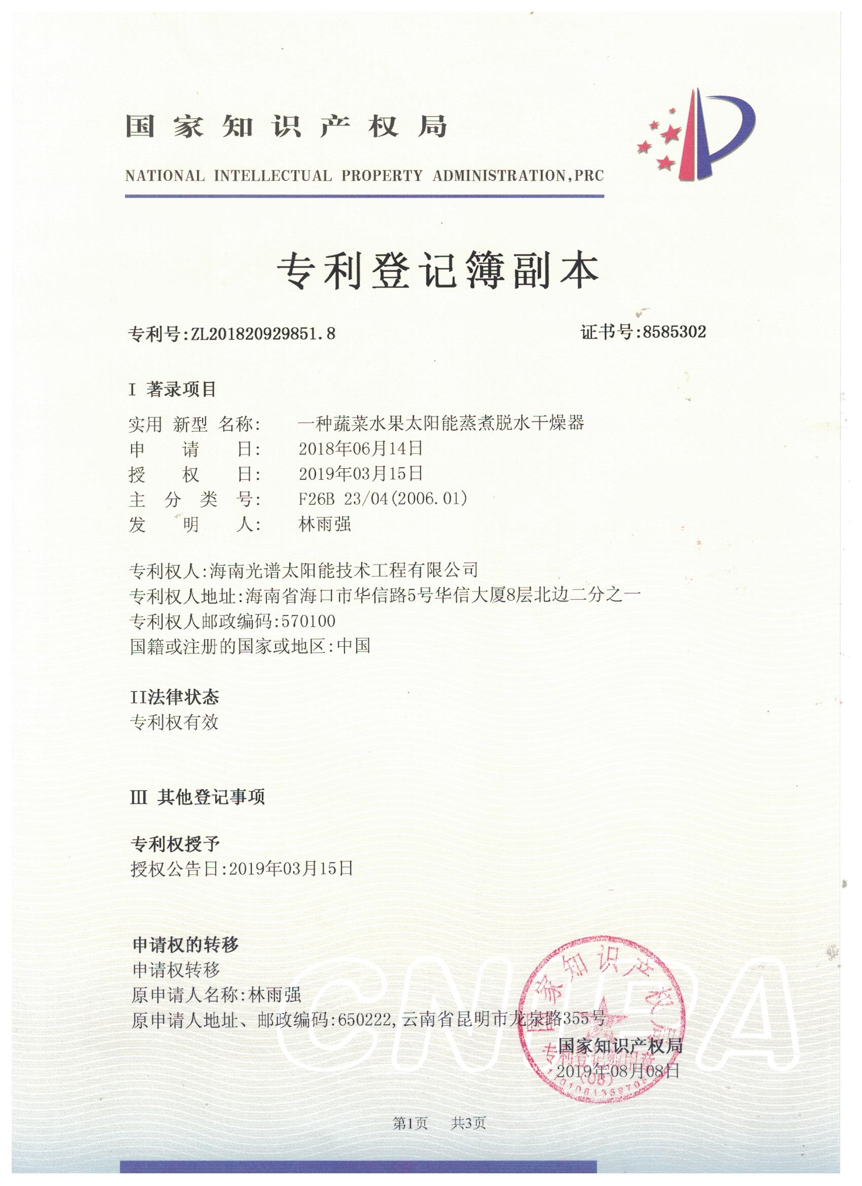 【喜報】熱烈祝賀海南光譜公司榮獲國家發(fā)明專利授權(quán),技術(shù)實(shí)力獲認(rèn)可!
